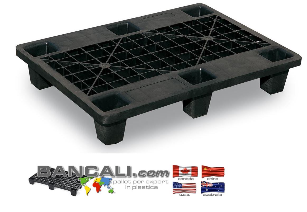 Pallet compatto in plastica riciclata, formato 600×800 mm, ideale per esposizione, movimentazione e stoccaggio in spazi ridotti.